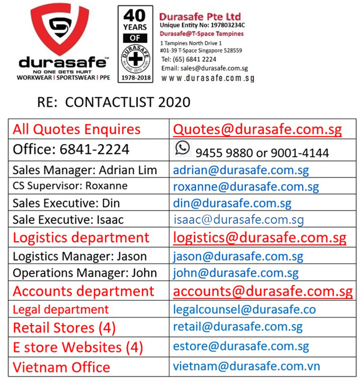PRODUCTS ARE AVAILABLE AT DURASAFE INTERNATIONAL STORES IN SINGAPORE | VIETNAM | THAILAND | INDONESIA | CHINA | PHILIPPINES | MALAYSIA | HONG KONG | TAIWAN