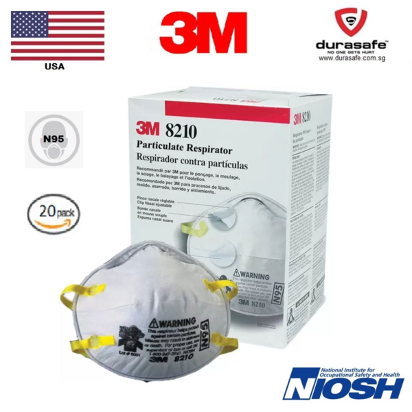 3M™ Particulate Respirator 8210, N95 is a disposable particulate respirator that is designed to help provide reliable respiratory protection of at least 95 percent filtration efficiency against certain non-oil based particles. This respirator is designed for use for particles such as those from grinding, sanding, sweeping, sawing, bagging, or other dusty operations. This respirator can also help reduce inhalation exposures to certain airborne biological particles (examples: mold, Bacillus anthracis, Mycobacterium tuberculosis), but cannot eliminate the risk of contracting infection, illness, or disease. The respirator incorporates 3M’s proprietary technology with advanced electrostatically charged microfiber filter media designed for ease of breathing. This respirator is compatible with a variety of protective eyewear and hearing protection.