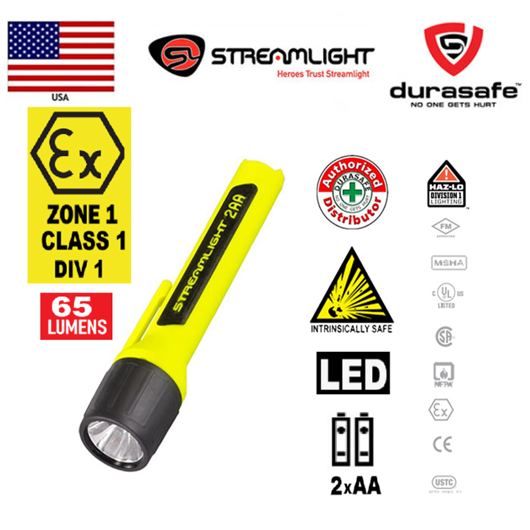 This small handheld flashlight is durable, waterproof and intrinsically safe. It also uses affordable, easy-to-find alkaline batteries.