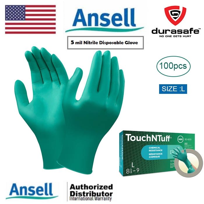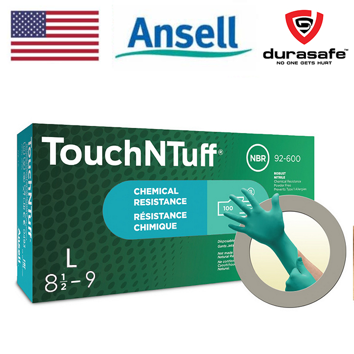 Disposable gloves are sometimes uncomfortable, but TouchNTuff 92-600 gloves are renowned for their superior comfort and durability. These best-selling teal green nitrile gloves from TouchNTuff are the world’s leading disposable gloves for chemical splash protection. Made with TNT Technology, a proprietary Ansell material formulation, TouchNTuff 92-600 gloves offer superior splash resistance against a wide range of hazardous chemicals. Their thick, 5 mil design makes them robust enough to offer superior durability. And because they’re made with a soft, elastic nitrile and are double chlorinated, these 5 mil nitrile gloves have a smooth, comfortable feel.