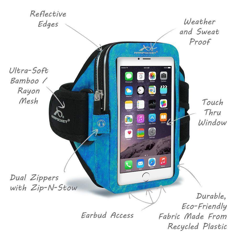 Get out…and discover your world! Armpocket® Ultra i-35™ Armband for iPhone 12 mini/SE 2020/8, Galaxy S7/S6, Google Pixel 4a & more. The Armpocket Ultra i-35™ is the perfect sports armband for your device with added space for credit cards, cash and anything else you might need on your ultra-run. This sleek case will protect your portable device securely through the elements — it is sweat-proof, and weather-proof so there is no need to hold back. It’s patented ergonomic design is paired with cushioned memory foam to keep you comfortable and focused. No other armband offers such superior quality, extreme comfort and guaranteed protection of your belongings.