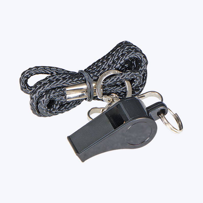 Whistle has a cork ball in the whistle chamber and a lanyard ring already attached.