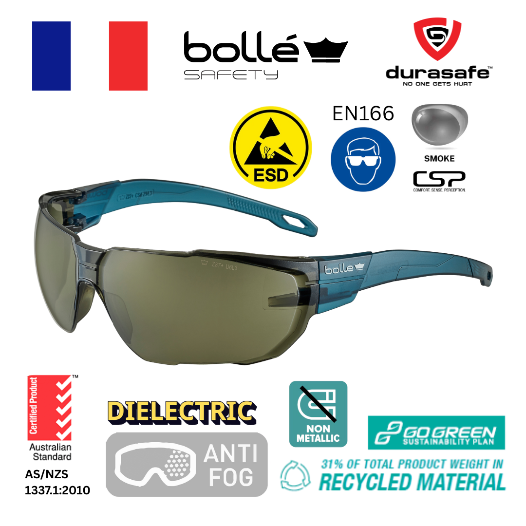 Designed to meet essential safety standards, SWIFT is an affordable safety eyewear that seamlessly combines design, comfort, and durability—featuring our PLATINUM Lite anti-scratch and anti-fog coating, ensuring crystal-clear vision in all situations. Its well-balanced frame provides daily comfort, while its flexible, contoured, and textured temples ensure optimal lateral protection, fit, and retention. As part of our Go Green range, SWIFT is crafted from 31% recycled polycarbonate and is fully recyclable, with a mono-material design without any metal components. Choose the clear version with an eco-packaging option for greater sustainability.