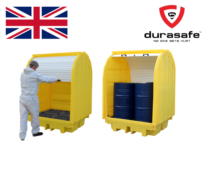 Manufactured from medium density polyethylene, this spill pallet has a hard cover and roller shutter door fitted with a central lock and two handles for easy opening and closing. The sump complies with all the UK regulations relating to sump capacities and comes complete with an injection moulded removable plastic mesh deck. You will require an appropriate size/capacity fork lift truck to offload this item from the delivery vehicle.