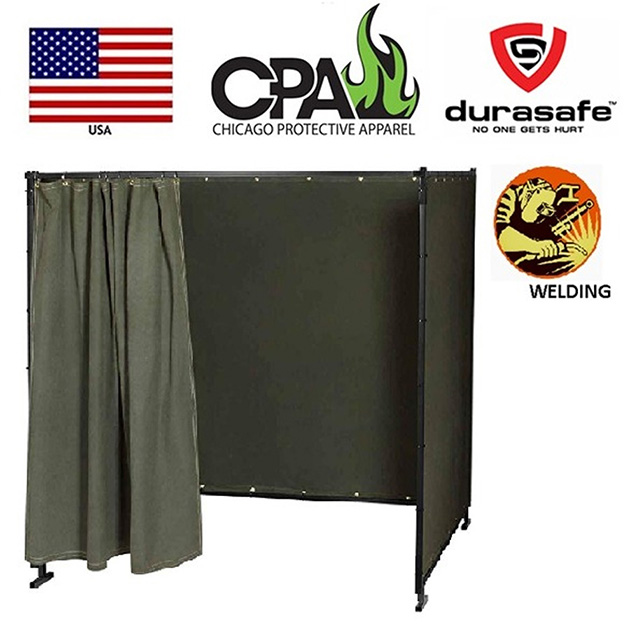 3-panel curtain in flame retardant olive green 12 oz. cotton duck
