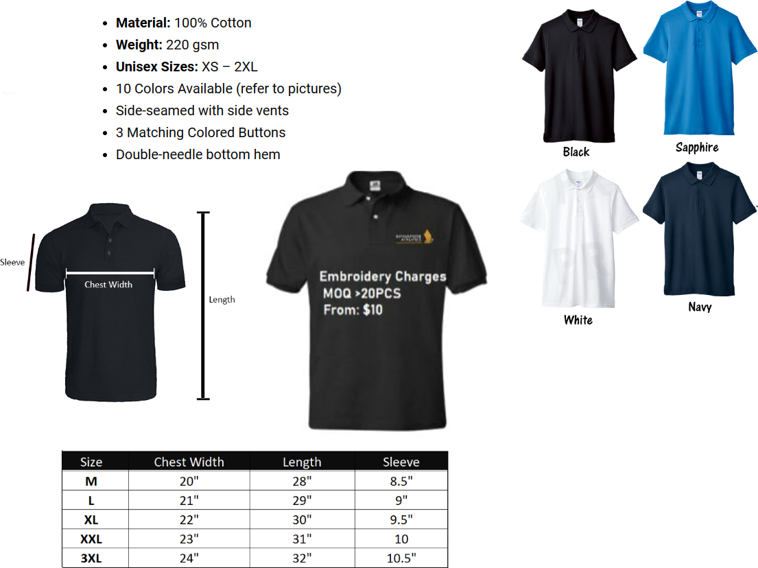| Color | Black, Navy, Royal Blue, White |