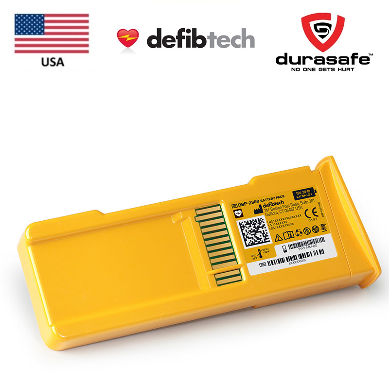 The lithium battery pack provides power to the DDU-100 AED. This replacement battery pack has a standby life (installed in the unit) of 5 years (including daily, weekly, monthly and quarterly self-tests), 125 defibrillation shocks, or 8 hours of continuous operating time in the Defibtech AED.