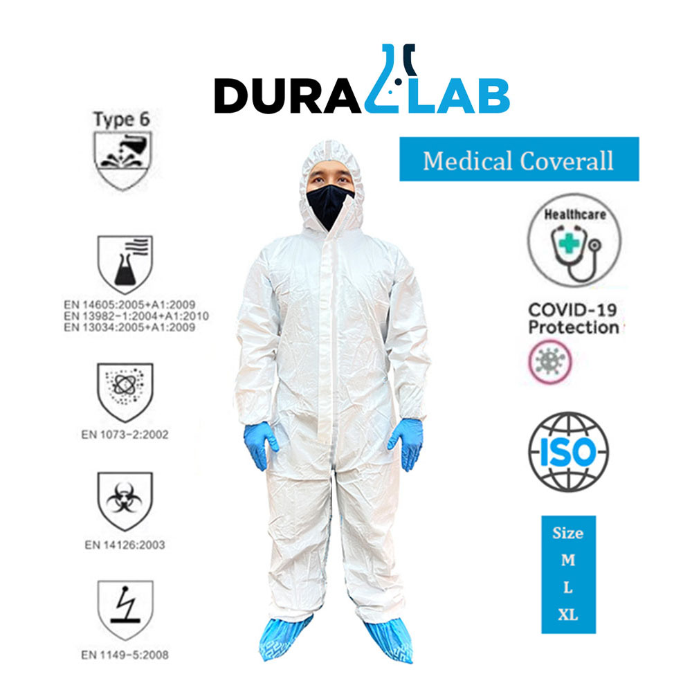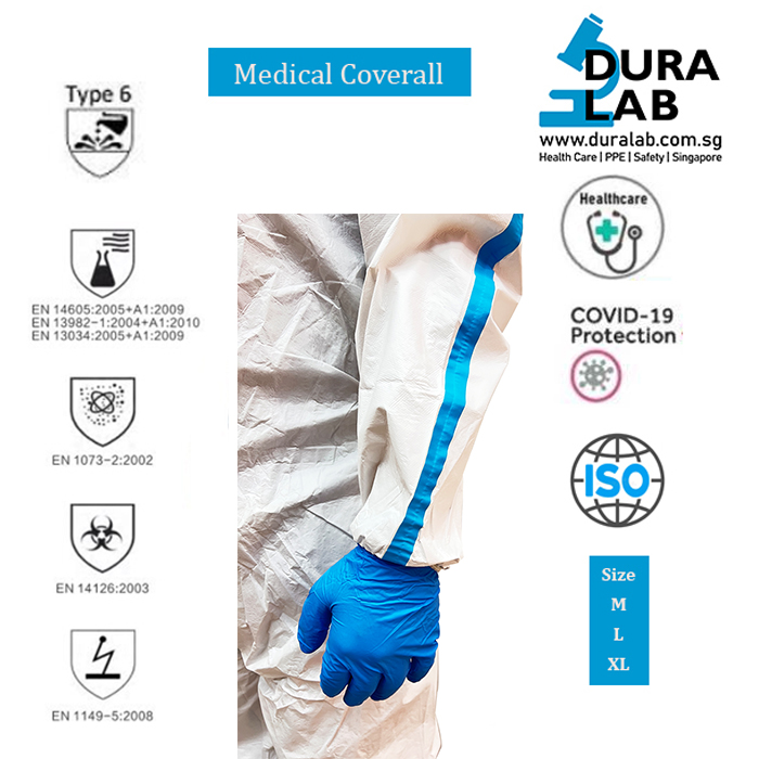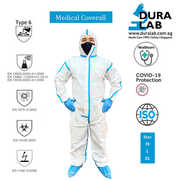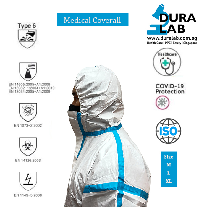– Color : white Microporous with blue tape seams.