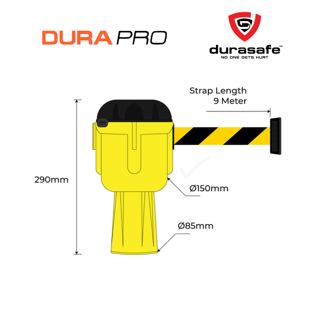 With its durable construction, extended 9-meter reach, and high-visibility belt, the DURAPRO RoadSafe W-TCB9 Cone Mounted Retractable Barrier System ensures efficient safety management in various environments. Make traffic control easier and safer with this reliable, easy-to-use system.