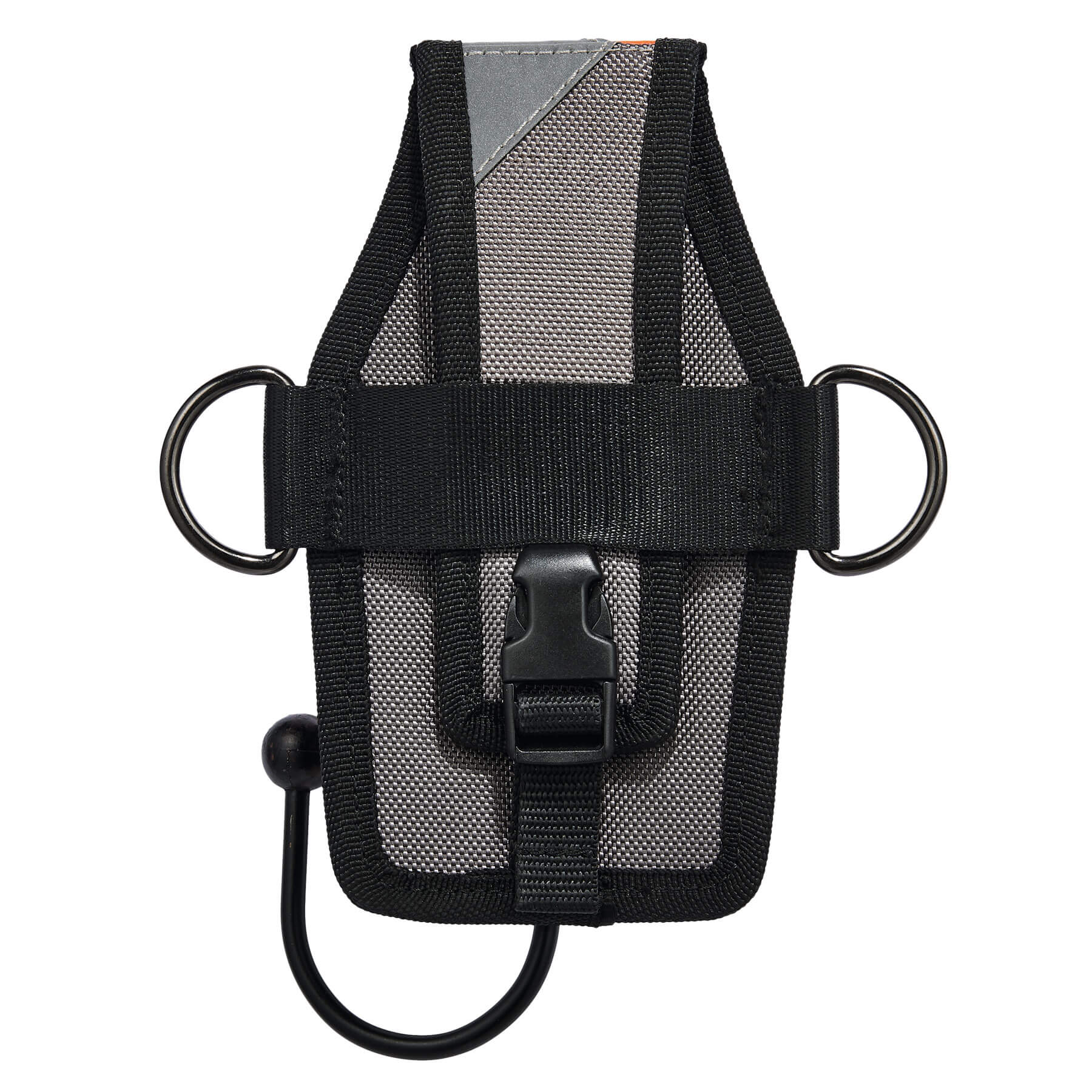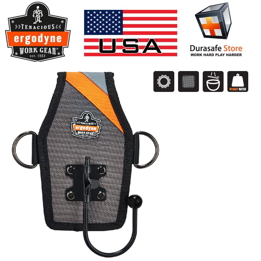 The Power Tool Holster holds power drills and impact drivers. An innovative modular buckle connection system on the back easily connects to standard tool belts and fall protection harnesses without the worker having to remove them. Tool lanyards can be attached to two D-rings on the holster for additional safety and security.
