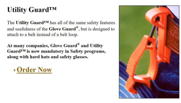 Utility Guard® reduces hand injuries by keeping work gloves available to workers at all times. Reduce glove replacement costs. Safety features include non-conductive material, resistance to flex fatigue and a 15 pound safety break-away. Ideal for maintenance, construction, automotive and electrical applications.