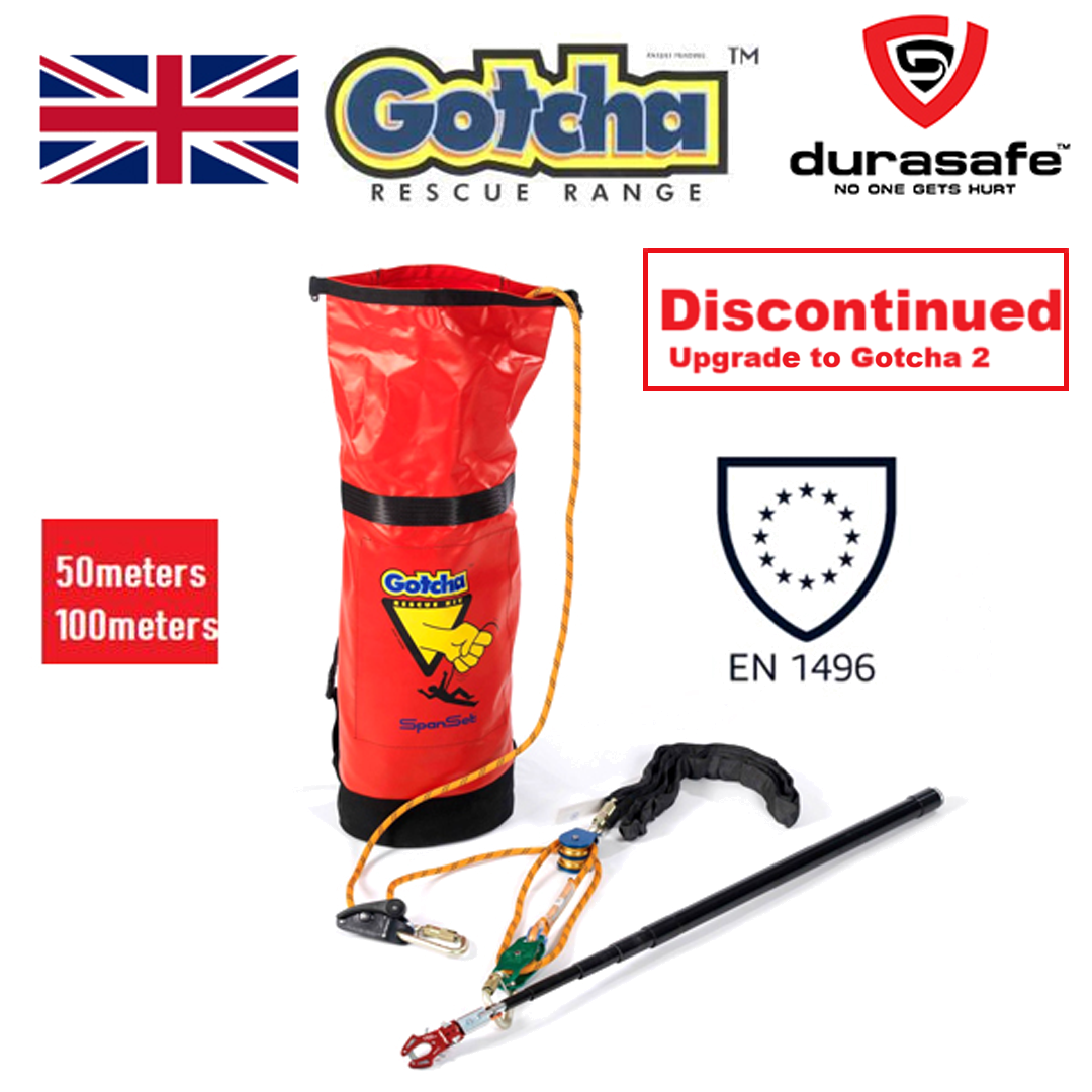 The GOTCHA Kit has been designed for either remote lifting, or lowering of a casualty for rescue. The system can be used for recovery of a casualty suspended on his fall arrest equipment without the need to cut him free, or put the rescuer at risk.
