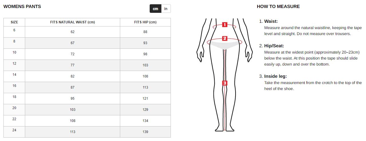 Australian Size 6 8 10 12 14 16 18