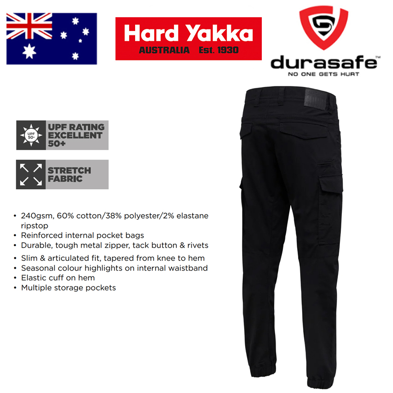 HARD YAKKA Y02340 3056 Workwear Cargo Cuff Pant Black Size 77R – 102R