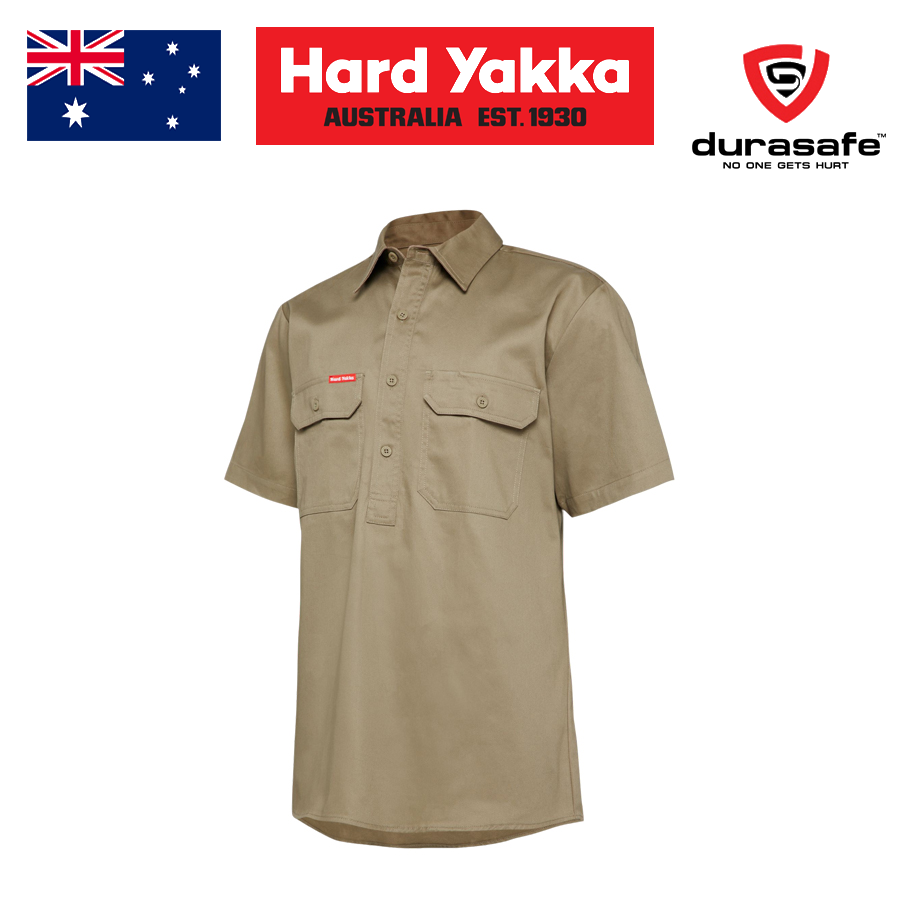 Get the job done with this no-nonsense, short sleeve, cotton drill shirt with a closed front for safety.