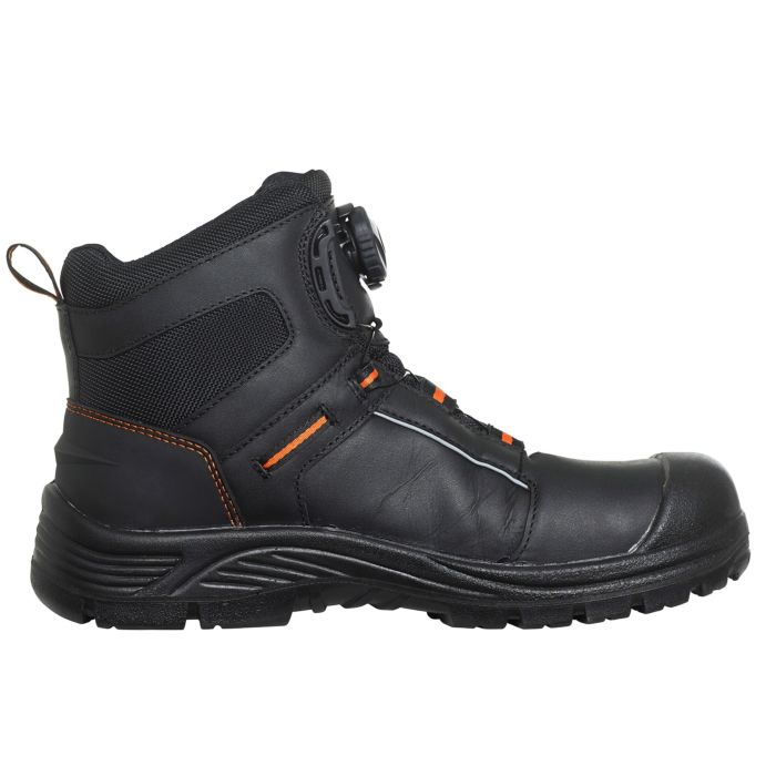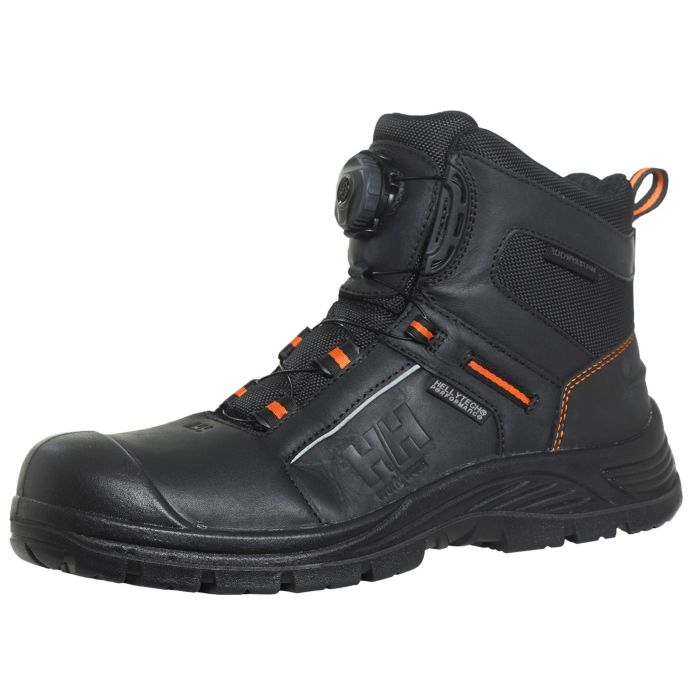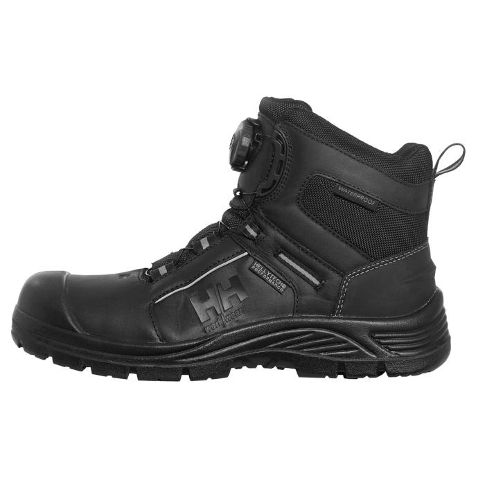 These high performance leather shoes feature a BOA® Lace construction for enhanced safety. They also have our Helly Tech® Performance membrane, for a fully waterproof and breathable experience. They come with a light-weight composite toe protection and Lenzi® nail penetration sole. They are also equipped with a PU direct injected toe cap and a scuff resistant counter reinforcement.