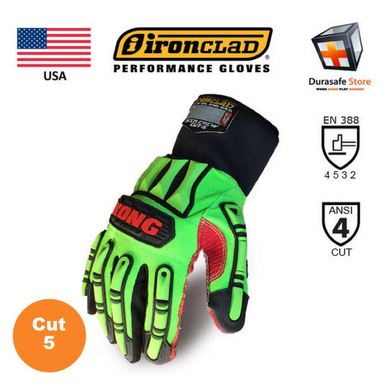 The KONG® Deck Crew Cut 5 is designed for serious abuse. It features a 4-layer palm for maximum abrasion resistance. It also has our exclusive CT5™ cut resistant material for cut level 5 protection. It’s also treated with DuPont™ Teflon® for oil and water resistance. It also offers complete back of hand protection that the Oil and Gas Industry demands.