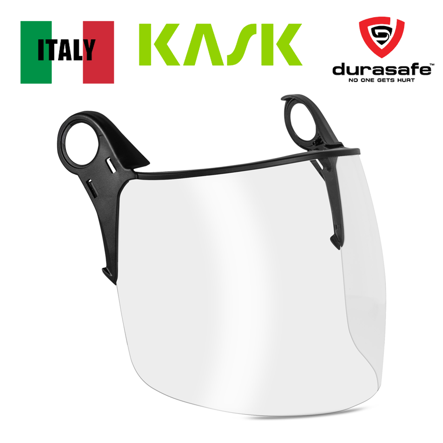 Fire-resistant, scratch-resistant, and anti-fog polycarbonate full face protection. Requires KASK Easy Click Adapters FR. Can be worn with corrective glasses. Compatible with all Quantum helmets. Meets EN 14458 Standard.