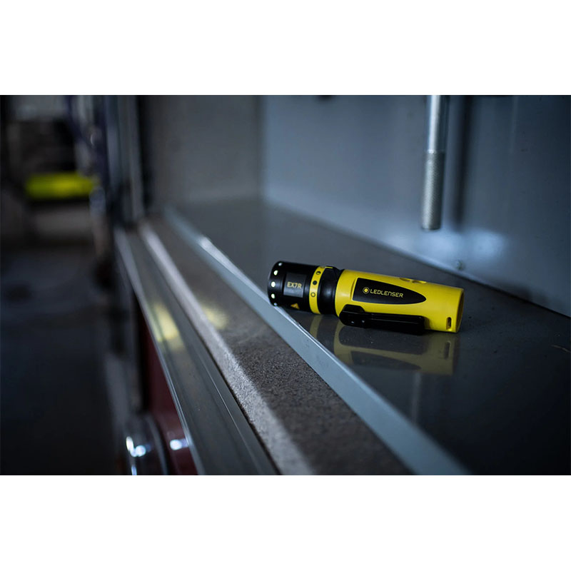 The extra large Magnetic Switch on the EX7R is easy to operate even with the clunkiest protective equipment, yet the flashlight is safe for use in Ex-Zone 0/20 and features a patented Advanced Focus System, meaning you’re safe in virtually any environment from tank to grain elevator with explosive gases or dusts. All this with a battery life of up to 45 hours.