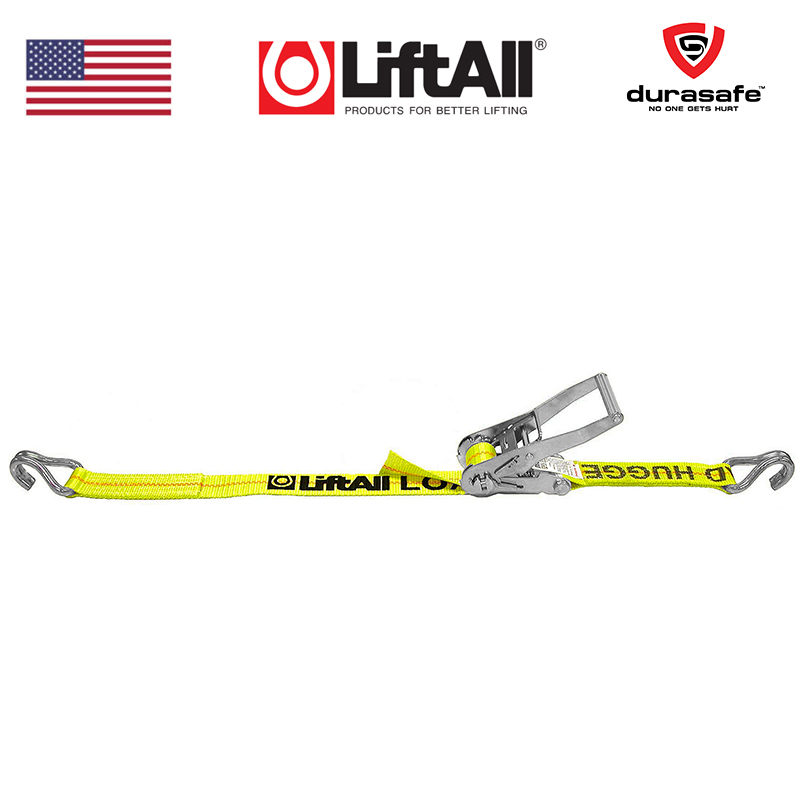 Load Hugger? Ratchet Tie-Down U-Hook style helps keep your cargo from shifting in transit. Made of strong polyester webbing, this strap is sturdy and flexible and conforms well to loads, creating an extra tight binding. Ratchet assembly makes them easy to adjust. This cargo strap is a ratchet-type strap for lifting up to 3300 lb. Durable polyester construction with steel hardware. 2-pc. steel construction comes in high-visibility yellow.
