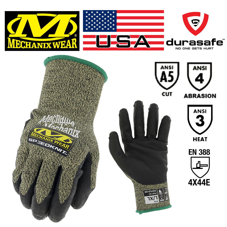 The SpeedKnit™ High Heat S37CG06 glove protect hands while working with hot materials and machinery. A comfortable 13-guage para-aramid blended machine knit shell conforms to your hand while blocking heat at an ANSI 3 heat resistance and provides an ANSI A5 cut resistance. The foam nitrile palm coating offers strong gripping power while increasing abrasion resistance that meets an ANSI level 4 rating so you can continue to work with confidence when manipulating hot parts and materials.