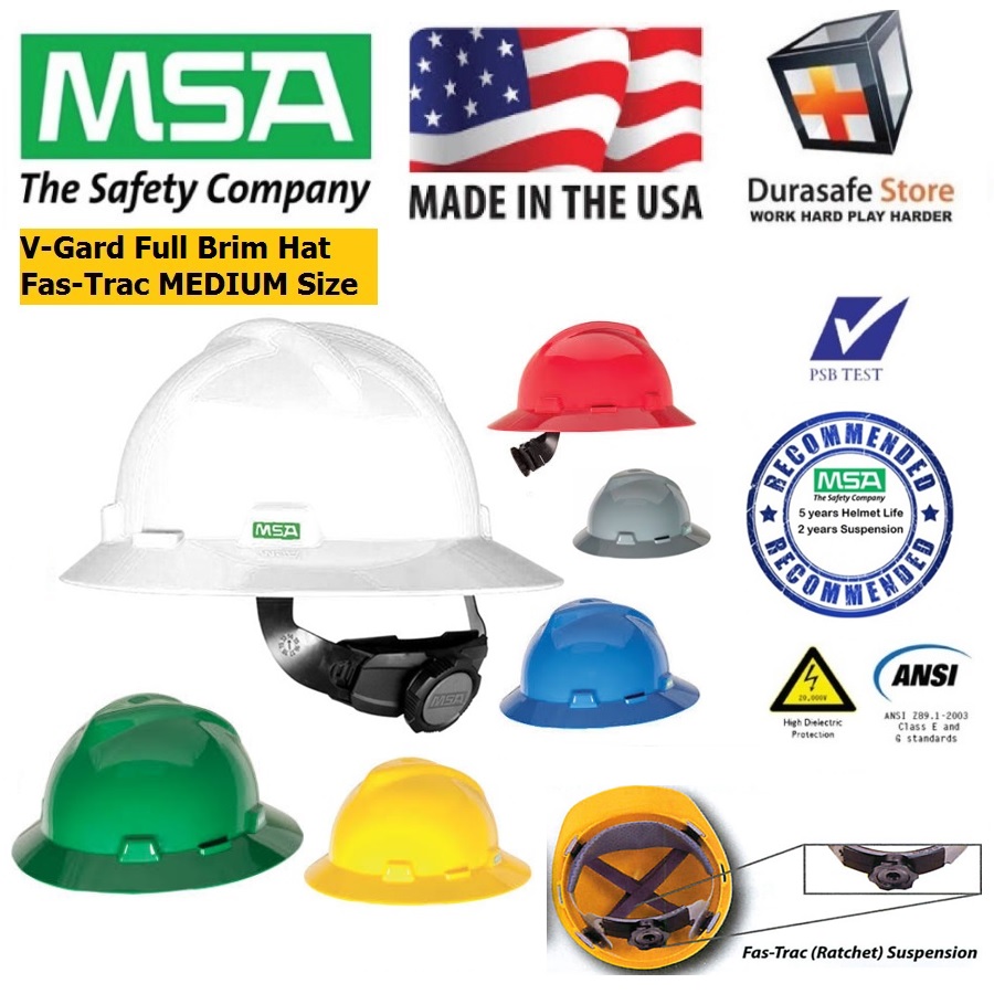 MSA V-Gard Slotted Safety Hat Full-Brim Fas-Trac Suspension Standard Size