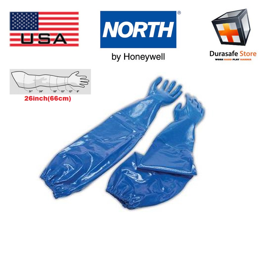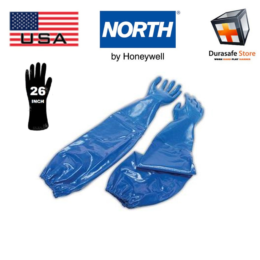The North by Honeywell NK803ES work gloves are high performance, supported nitrile gloves that offer superior resistance to cuts, snags, abrasions and punctures. Their interlock liner gives gloves added strength while adding comfort to the wearer. The hand portion of the gloves are treated with a permanent anti-bacterial and anti-mildew agent. The unique textured finish provides excellent grip on oily, wet or dry objects. These blue gloves have a rough grip and an extended cuff that measures 26″.