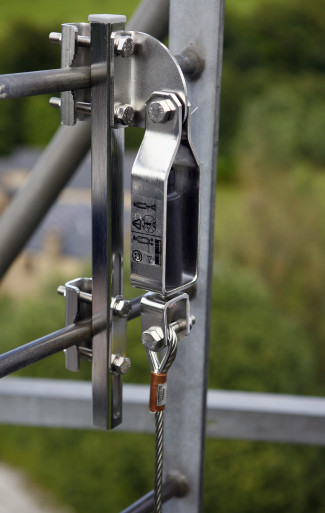 Cabloc™ Inline Energy Absorber rated for a 1 user system. Stainless Steel and plastic construction.