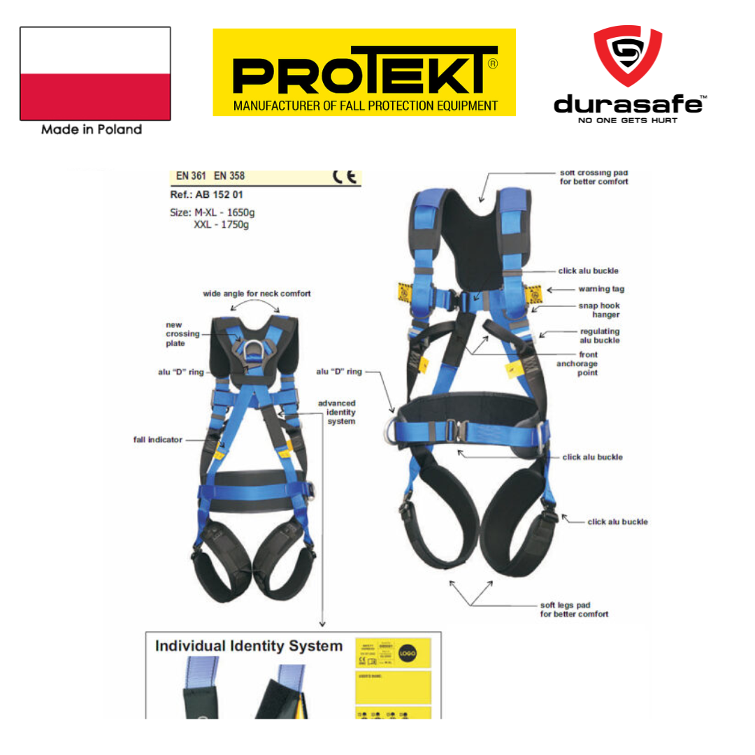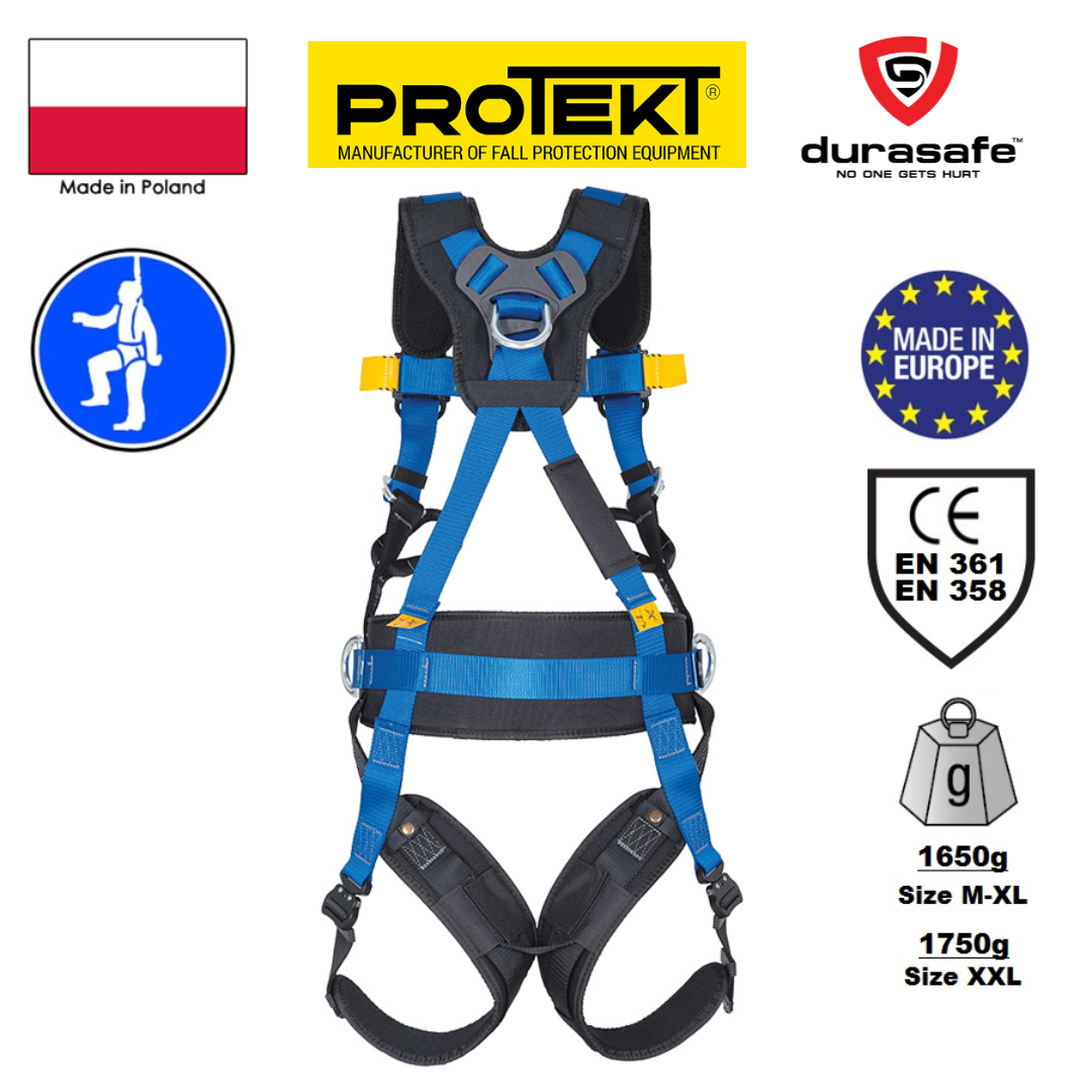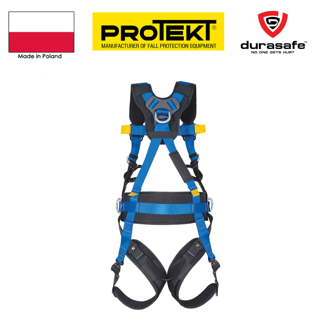 Protekt P52 Pro Safety Harness with 1 D-Ring at the Back and 2 D-Rings at the Waist and Chest.