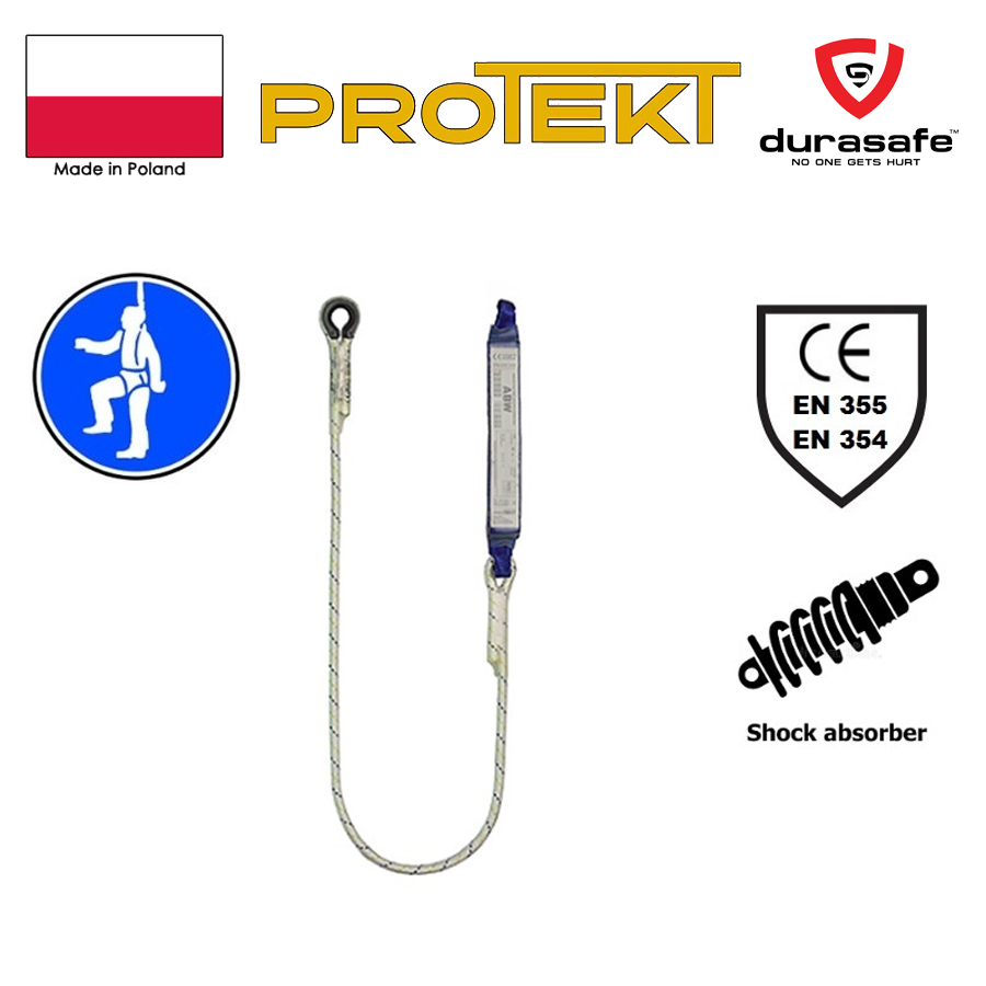 The LB101 lanyard comes with an energy absorber. Maximum length including connection snap hooks is 2m. Safety lanyard is made from Polyamide.