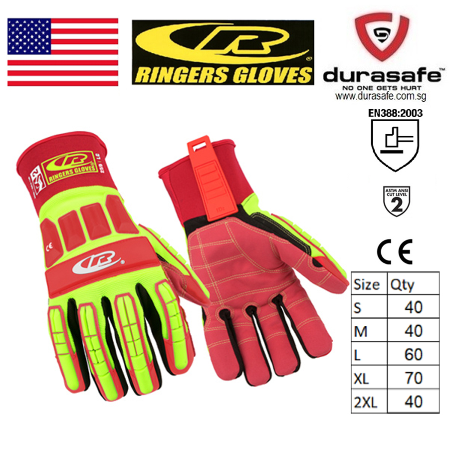 RINGERS 259 Roughneck Impact, Cut & Grip Resistant Oil & Gas Rigger Glove Hi-Viz Yellow, USA, Size S-2XL