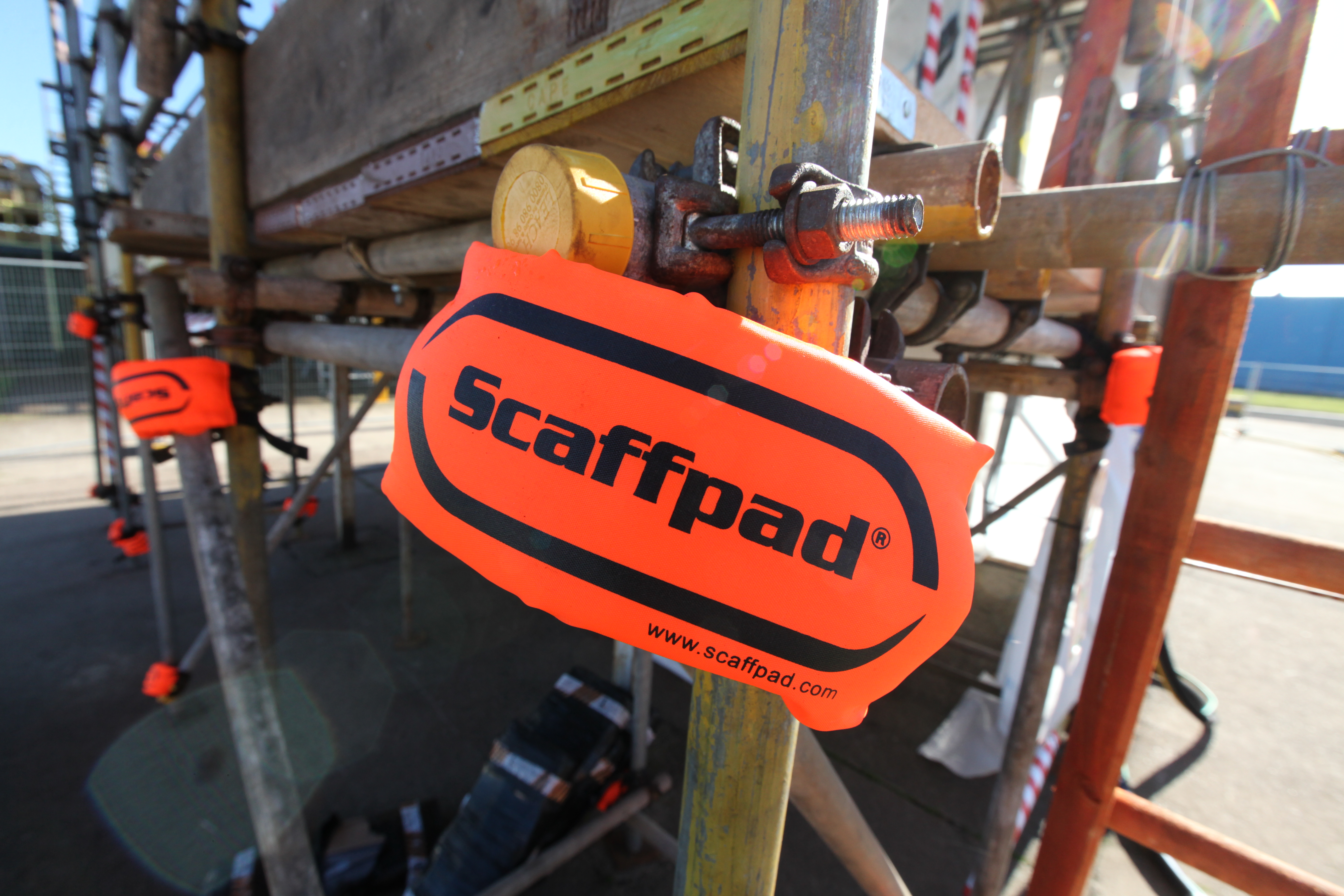 Scaffpad® is an extremely durable, flame retardant covered foam pad that fixes easily over protruding joints and bolts without the need for additional parts or tools. The integral strap design with hook and eye fasteners enables Scaffpad® to be reused time and time again, helping to reduce site waste while protecting employees.