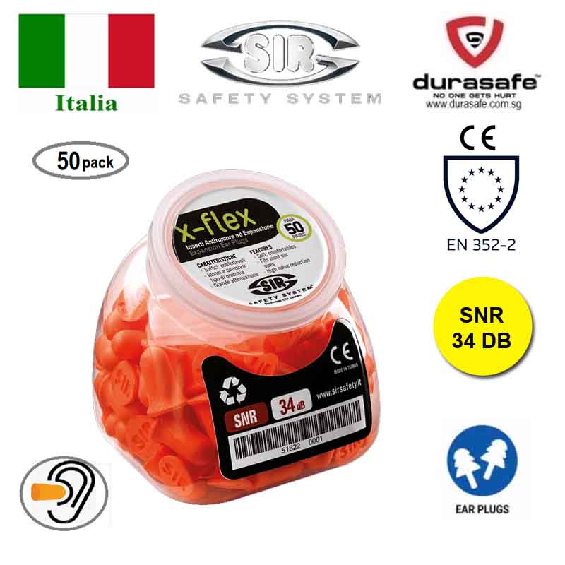 The product has been designed and manufactured to comply with Regulation (EU) 2016/425 and subsequent amendments, and to conform to the requirements of EN 352. It is classified as PPE Cat. II. Soft disposable earplugs in polyurethane foam, 23 mm long. Suitable for prolonged use.
