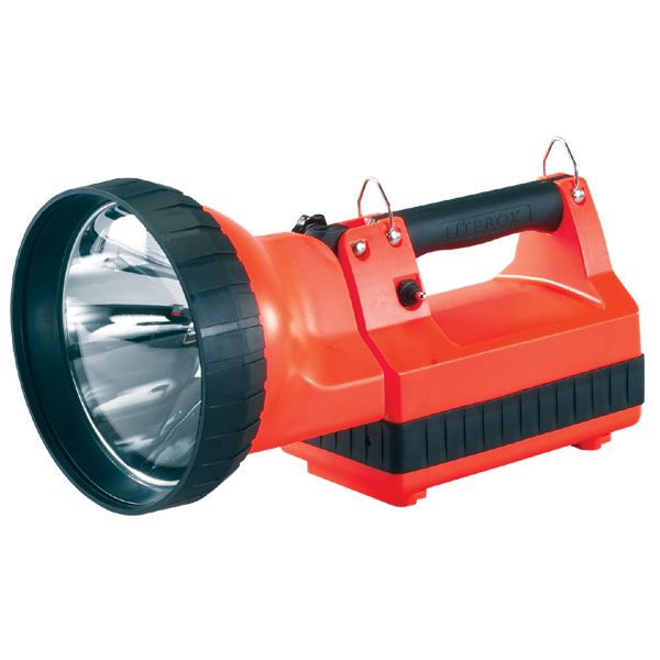 Streamlight 45602 HID Litebox Rechargeable High Intensity Searchlight/Floodlight with 230 volt Charger the One Million Candlepower High-Intensity Discharge Search Light that Illuminates Objects One Mile Away! The H.I.D. LiteBox? has the intensity and peripheral illumination to light an entire scene; plus navigation LEDs for low-light maneuvering. Ideal for field maintenance, inspection of construction sites and remote equipment, it?s a heavy-duty, rechargeable, completely portable high intensity search that does it all.