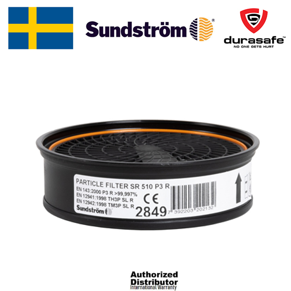 The SR 510, P3 R* particle filter is designed for use in Sundström half masks, full face masks and the SR 500/ SR 500 EX/SR 700 fan. The filter provides protection against all types of particulate pollutants. The particle filter can easily be combined with gas filters from the Sundström filter range in order to provide protection also against gases and vapours, e.g. during spray painting. The particle filter should be combined with pre-filter SR 221, which will thereby extend the life of the particle filter. The SR 500/SR 500 EX fan should always be used with two particle filters or two combined filters consisting of gas filters and particle filters. *R (Re-useable): The filter is intended to be used for more than a single shift.