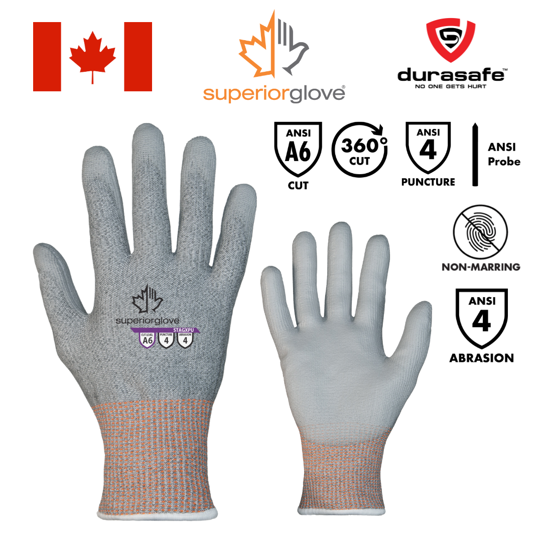 Our TenActiv™ STAGXPU low-linting gloves feature a light color to show dirt, stains, or other particulate matter and a non-marring polyurethane dip palm coating that protect surfaces by preventing contamination. Ideal for glass handling or final assembly, they are made with TenActiv™ engineered yarn that provides 360° cut protection with ANSI A5 cut resistance and the polyurethane palm coating offers steady dry grip with a bare hand feel.