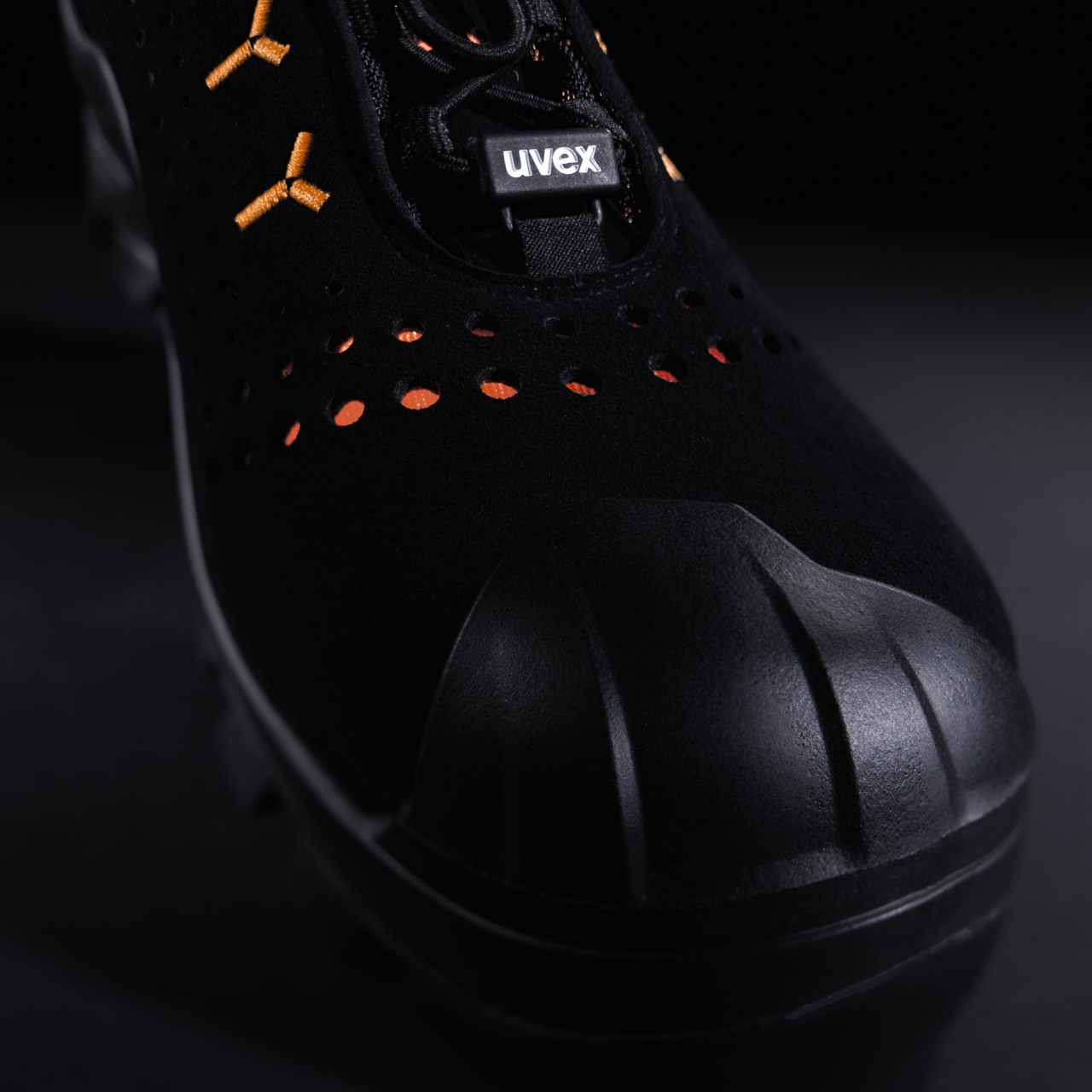 - 100 % metal-free uvex xenova® toe cap and penetration-resistant xenova® midsole – compact design, anatomical shape, good lateral stability, no thermal conductivity