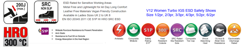 Official Safety Rating EN ISO 20345 2011 CE S1P HI HRO SRC ESD