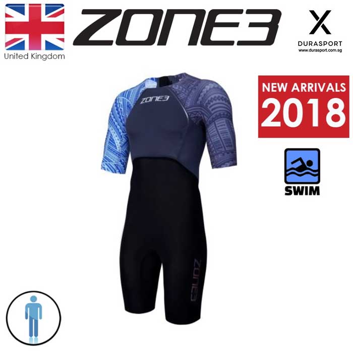 New and improved, the Zone3 swimskin now features short sleeves and a Tribal print design to give a nod to the Kona Ironman world champs. The suit is designed to offer extra core support and reduce drag during non-wetsuit swims.